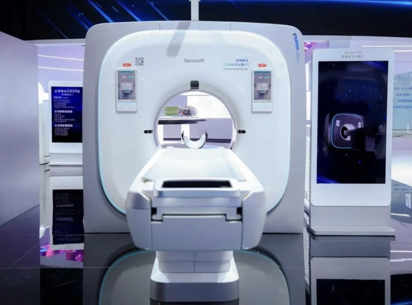 “以前我们努力从跟跑到并跑。下一个阶段,我们要从并跑迈向领跑。”陈炳澍的这句话,在东软医疗CMEF展台上最具象征意义的展品——NeuVizP10光子计数CT上得到了验证。